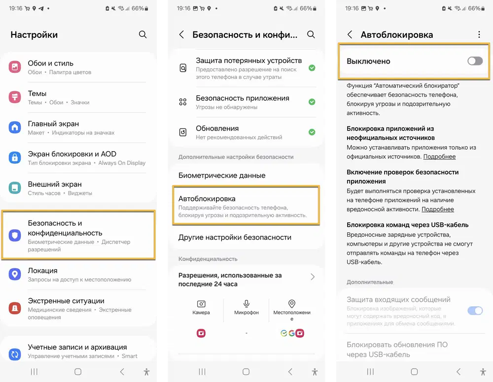 После обновления, если функция "Автоблокировщик" включена и установлены максимальные ограничения, подключение к этому устройству других устройств через USB во время зарядки будет запрещено. - Безопасность