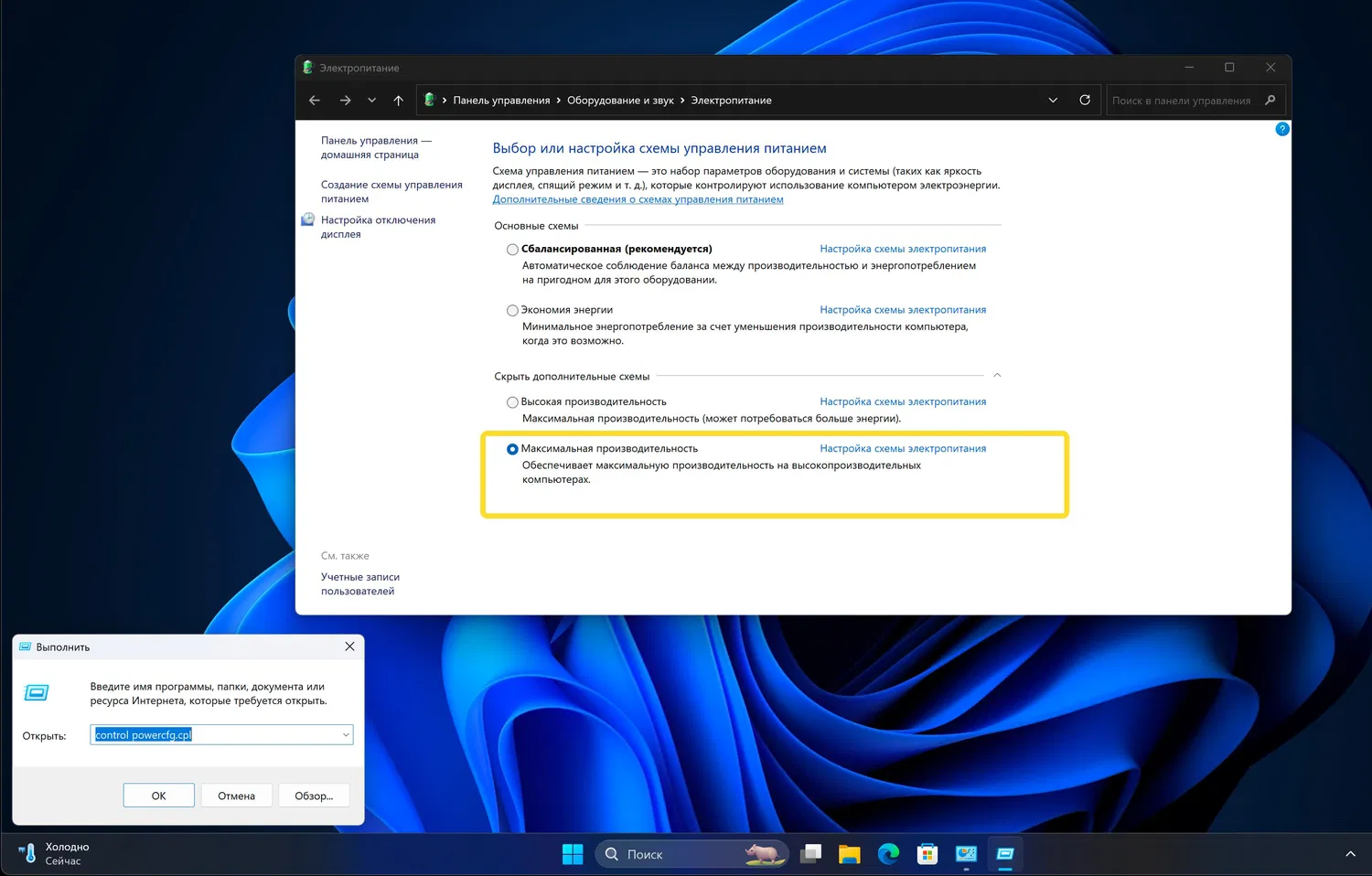 Чтобы добавить схему электропитания «Максимальная производительность» в систему Windows 11, нужно выполнить всего несколько шагов.