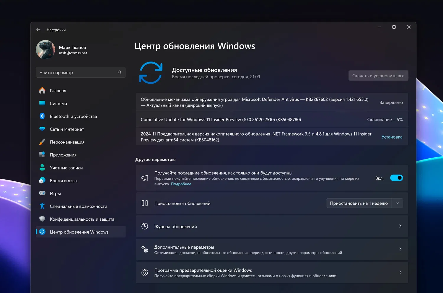 Примечание. Microsoft заблокировала установку обновлений для инсайдеров Windows 11 в России и Беларуси. Для установки обновления KB5048780 (Build 26120.2510) вы можете использовать наши DNS-серверы: Установка инсайдерских сборок Windows 11 с помощью Comss.one DNS.