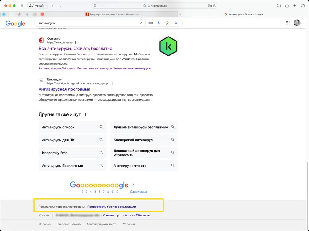 Нажатие или касание ссылки Попробовать без персонализации перезагружает результаты учета данных о вас. Другими словами: вы получаете информацию, как будто Google ничего не знает о вас. Хотя это не гарантирует, что результаты будут другими, это может помочь пользователям Google, которым не нравится персонализация результатов.