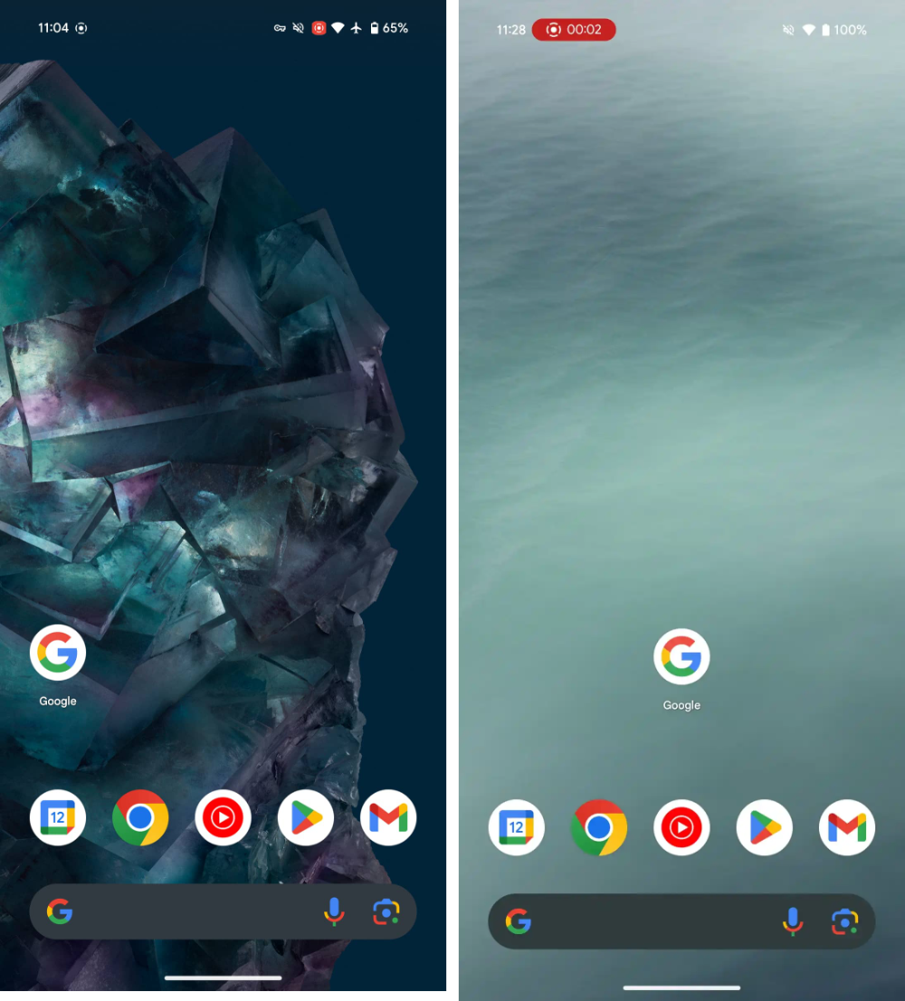 Кардинальным изменениям подверглись индикаторы системных функций. Индикаторы трансляции экрана, записи и совместного доступа перемещены из правой части строки состояния в левую часть в виде отдельного информативного элемента. Важным улучшением стал постоянно видимый счетчик, а функция "Остановить запись" теперь доступна одним нажатием без необходимости открывать шторку уведомлений, что повышает удобство использования.