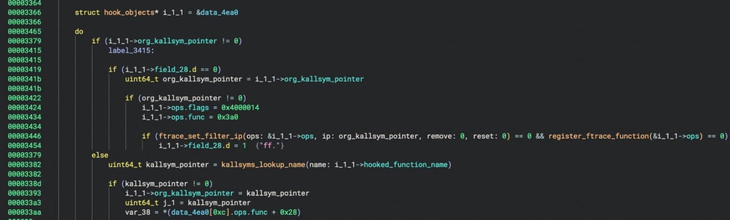 В отличие от современных руткитов, нацеленных на версии ядра 5.7 и выше, руткит не использует kprobes, что указывает на то, что он разработан для старых ядер.