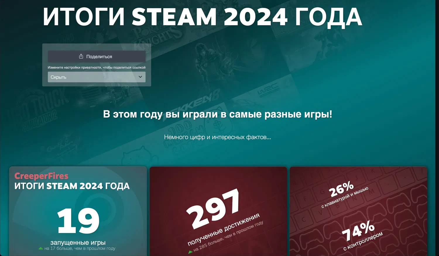 Поделитесь своими игровыми достижениями: что оказалось самым неожиданным в вашем отчёте?