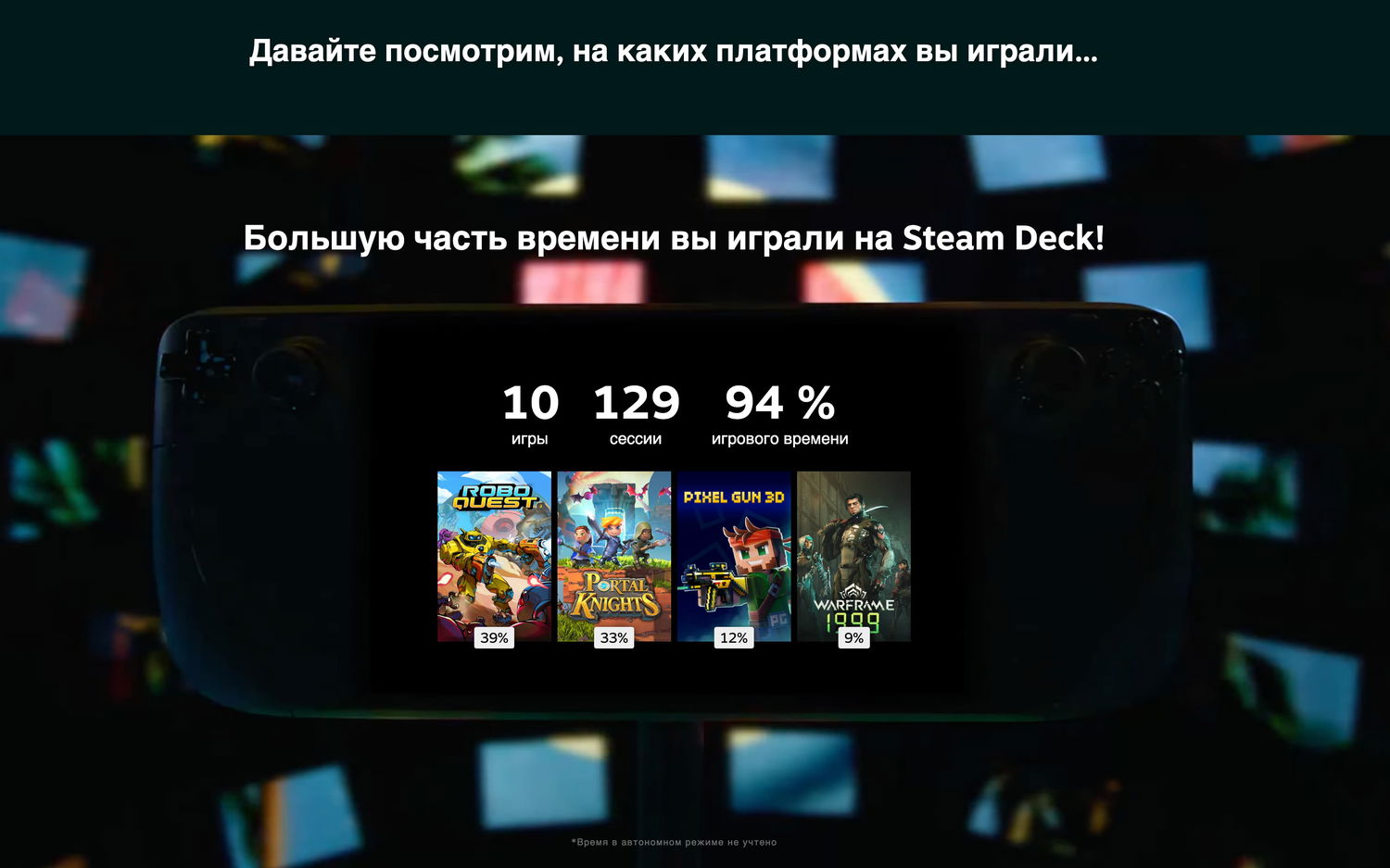 Для владельцев игровой консоли от Valve отчёт покажет и ваши самые популярные игры на этом устройстве.