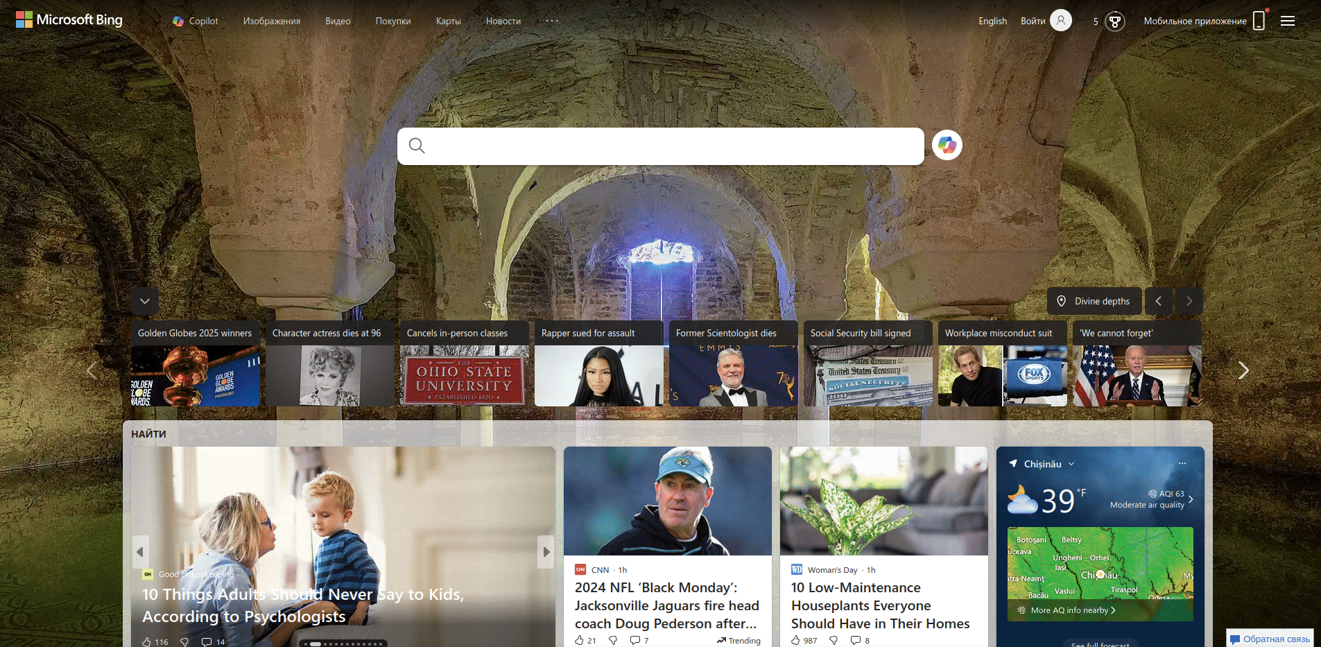 - Автоматическая прокрутка для сокрытия элементов интерфейса Bing