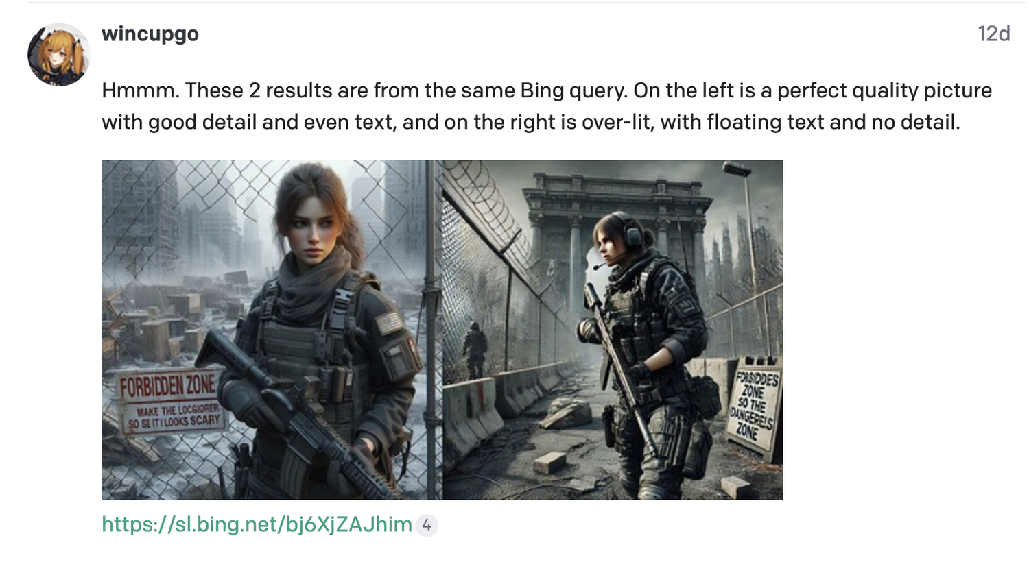 Когда Рибас впервые объявил об изменениях в декабре, начали появляться жалобы, что Bing Image Creator создает менее детализированные изображения или результаты, которые не соответствуют запросам. В своих первых ответах он утверждал, что качество изображений «должно быть немного лучше в среднем», чем раньше.