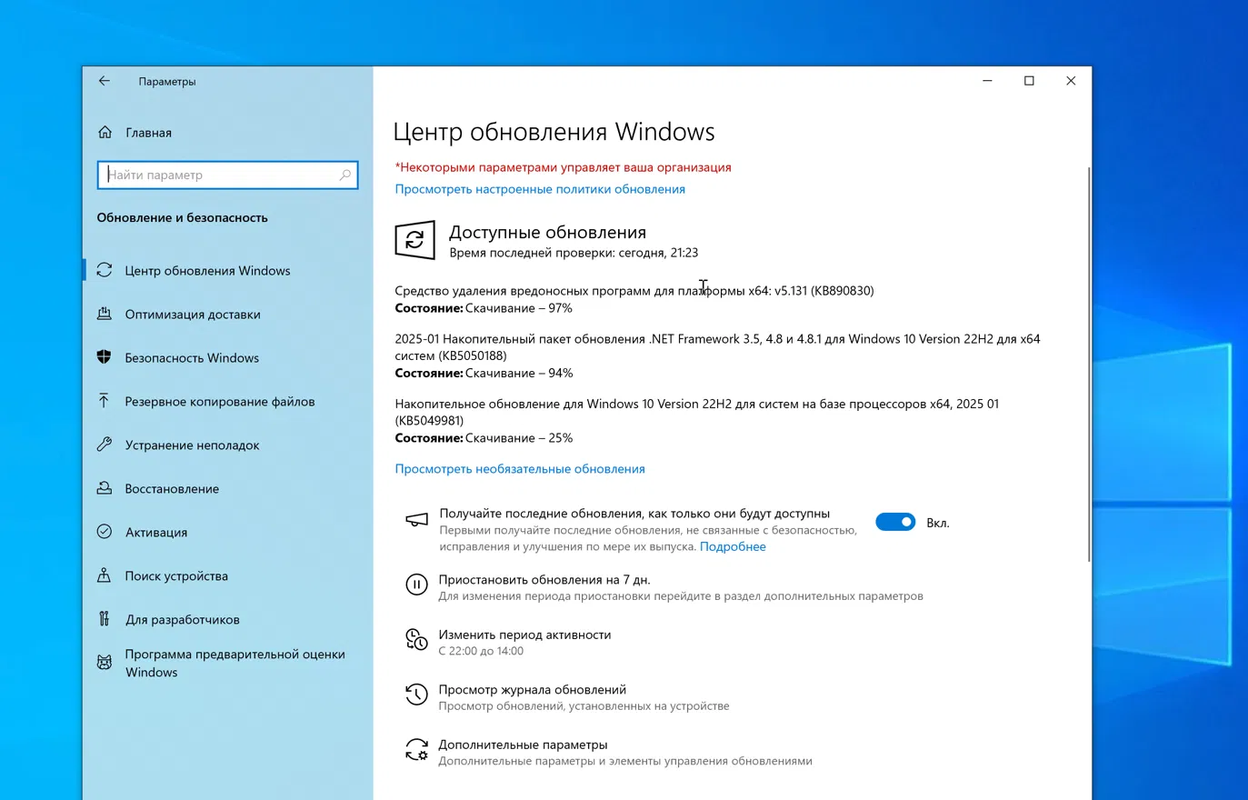 Установка через Центр обновления Windows