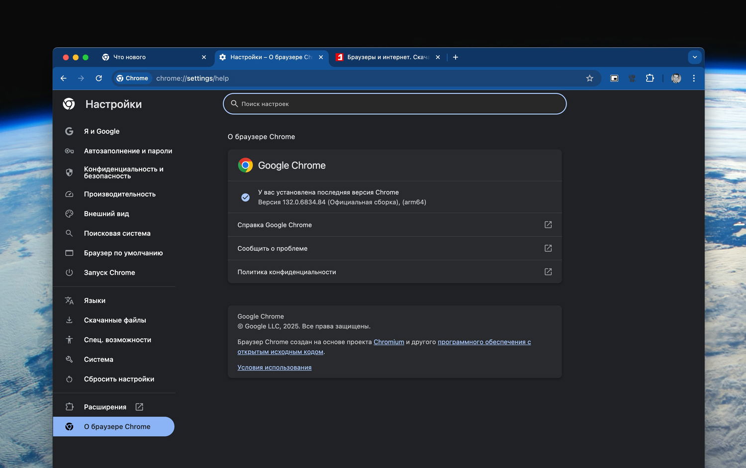 На странице будет отображаться текущая установленная версия браузера. При открытии этой страницы Chrome автоматически проверяет наличие обновлений. Обновление будет скачано и установлено автоматически на этом этапе.