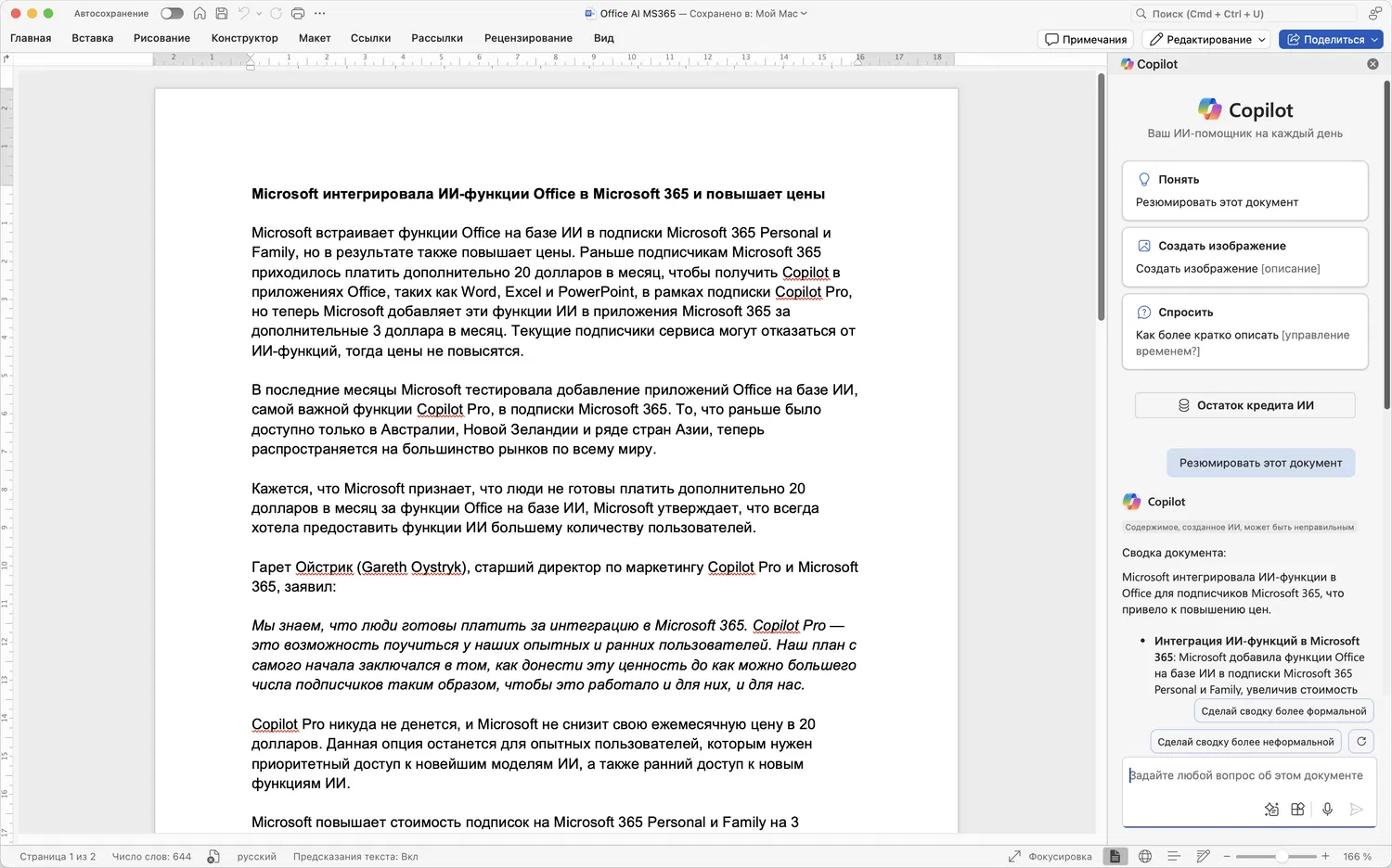 Microsoft повышает стоимость подписок на Microsoft 365 Personal и Family на 3 доллара в месяц в США, чтобы предоставить всем подписчикам эти функции Office на базе ИИ.