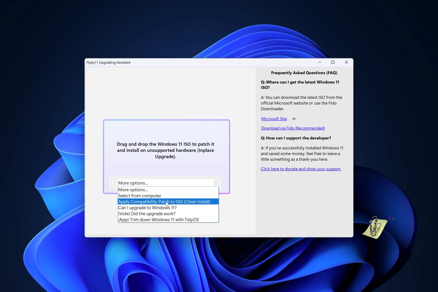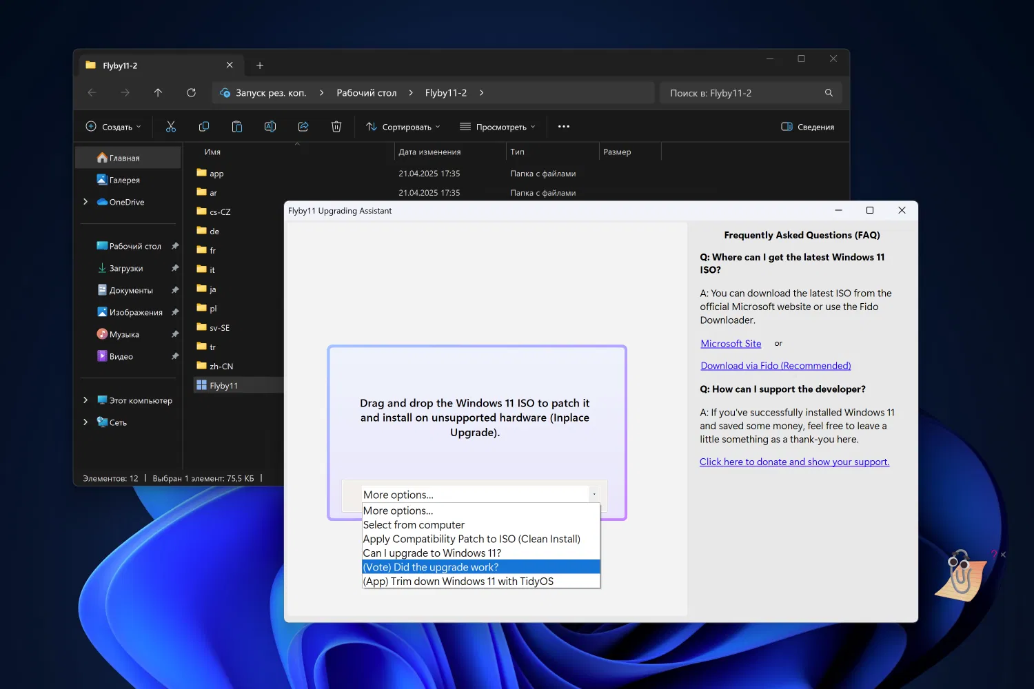 Программа Flyby11 с открытым исходным кодом ранее поддерживала два метода установки последней версии Windows 11 на неподдерживаемое оборудование. Она была проста в использовании и хорошо работала во время тестов.