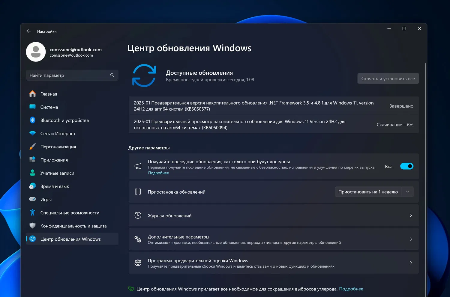 Примечание. Чтобы предварительные обновления устанавливались автоматически, включите опцию Получайте последние обновления, как только они будут доступны в меню Параметры > Центр обновления Windows.