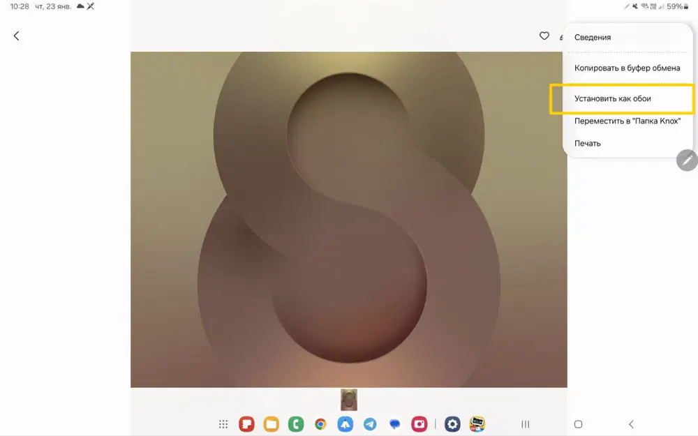 Чтобы установить обои на главный экран или экран блокировки, откройте изображение в Галерее, нажмите на значок меню с 3 точками и выберите пункт «Установить как обои». Наслаждайтесь!