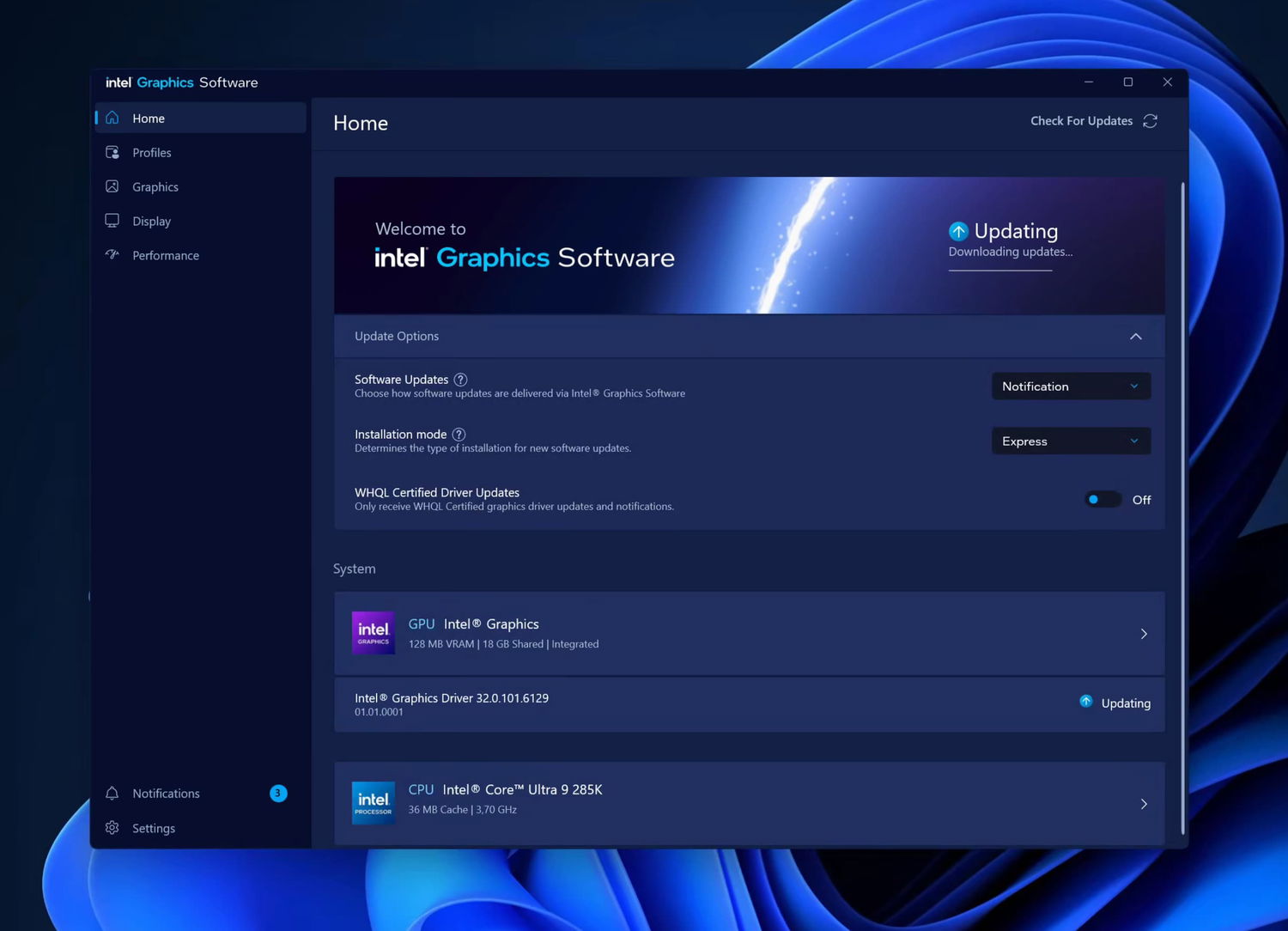 Обновление Intel Arc & Iris Xe Graphics Driver версии 32.0.101.6460 Non-WHQL и 32.0.101.6259 Non-WHQL доступно для скачивания через Intel Graphics Software (если отключена опция "Обновления драйверов, сертифицированных WHQL" на главной) Intel Driver & Support Assistant или с официального сайта Intel.com