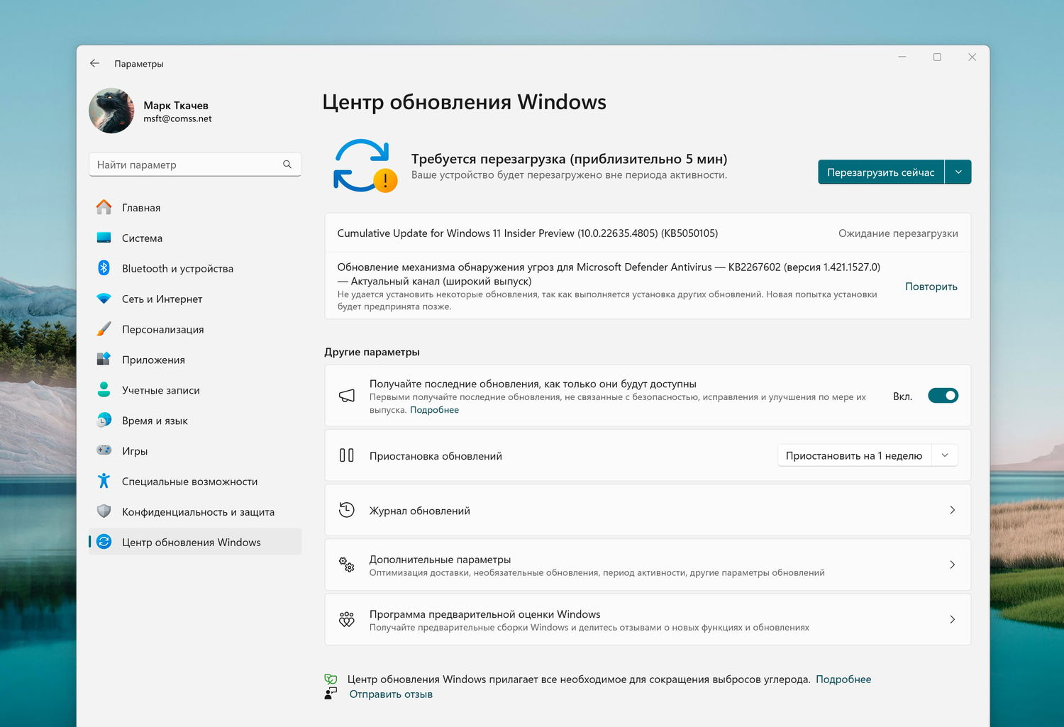 Для завершения установки потребуется перезагрузка компьютера. После обновления номер сборки Windows 11 поменяется на 22635.4805.