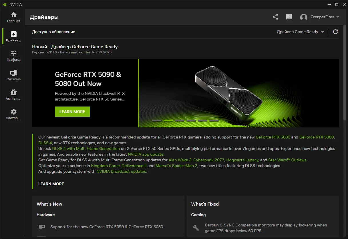 Что нового в NVIDIA GeForce Game Ready 572.16 WHQL
