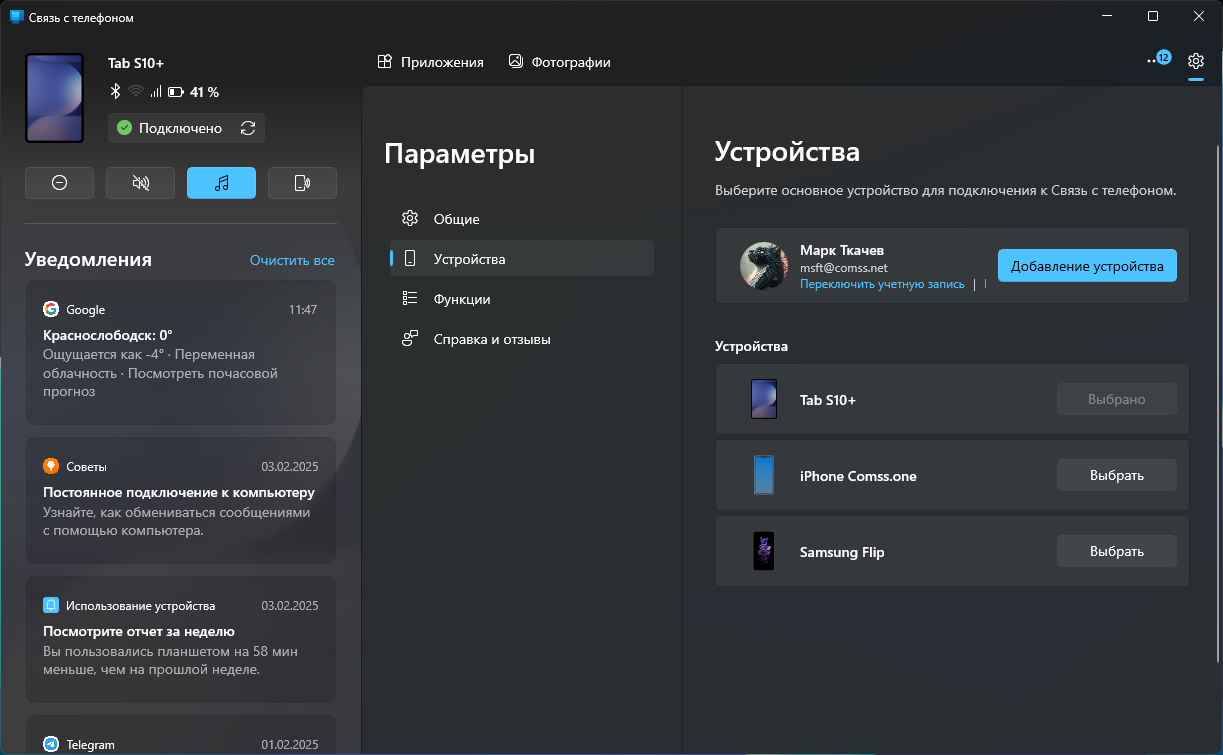В приложении «Связь с телефоном» была возможность отсоединить или отключить телефон в настройках приложения. Но после некоторых обновлений переключатель для удаления подключенного телефона неожиданно исчез. Сейчас, если вы перейдете в Связь с телефоном > Параметры > Устройства, вы увидите все свои телефоны, но переключателя для удаления телефона там больше не будет – для отвязки устройства необходимо выйти из учетной записи Microsoft, что приводит к отключению всех подключённых телефонов.