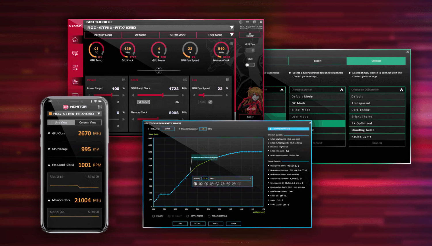 «Программное обеспечение GPU Tweak III поддерживает разгон, андервольтинг и управление вентиляторами, предоставляя пользователям полный контроль над параметрами видеокарты» – ASUS.