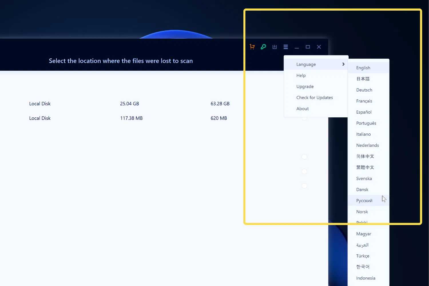 2. После установки программы в меню выберите Language > Русский, чтобы перейти на русский интерфейс.