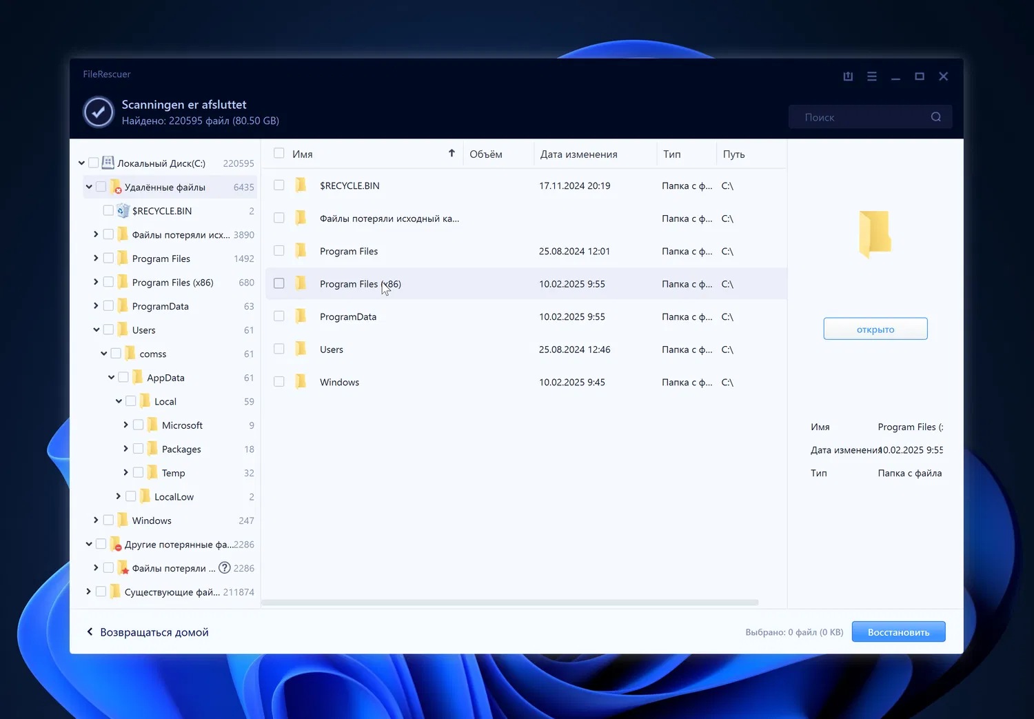 - Восстановление удалённых файлов: позволяет вернуть данные, даже если они были удалены с использованием Shift + Delete.