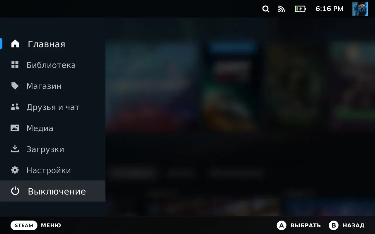 - Нажмите кнопку Steam и выберите пункт Выключение.