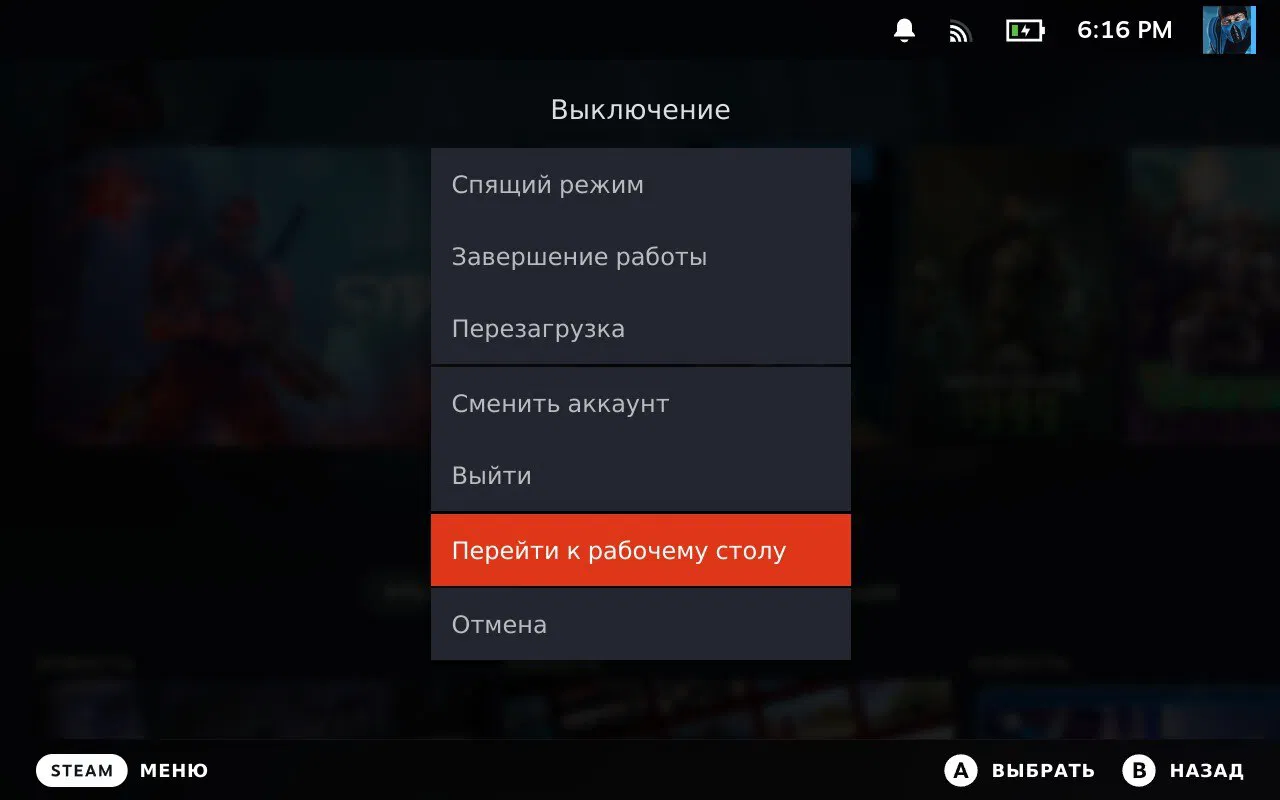 Ниже приведены примеры (изображения можно увеличивать), как выглядит переход в режим рабочего стола на Steam Deck с SteamOS 3.6: