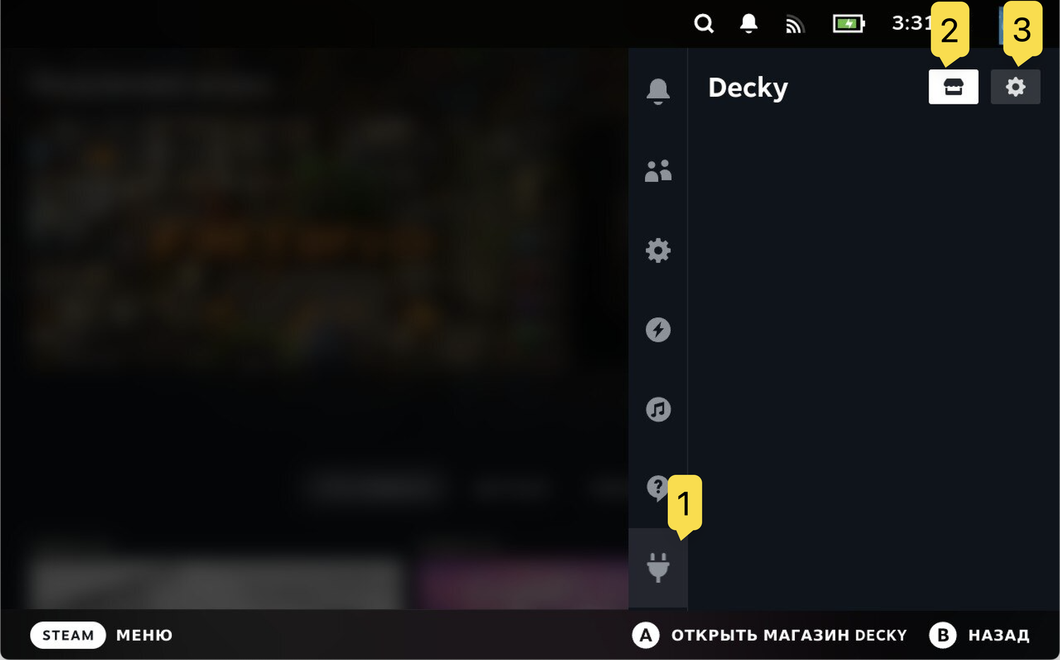 Теперь, когда Decky Loader установлен, выполните следующие действия:
