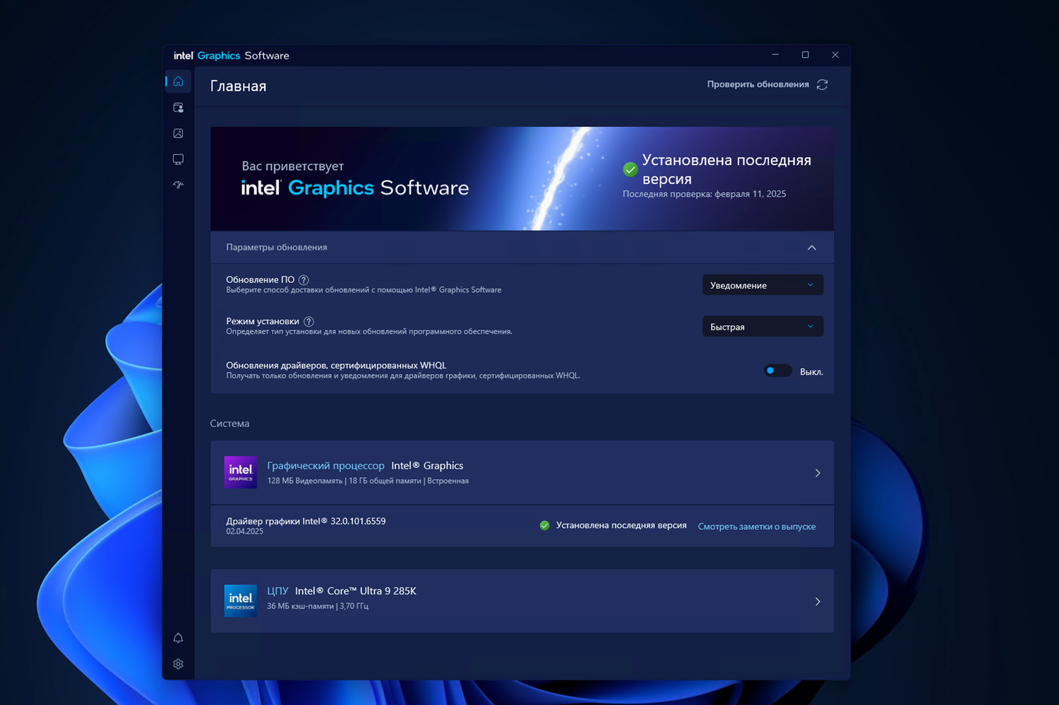 Обновление Intel Arc & Iris Xe Graphics Driver версии 32.0.101.6559 WHQL доступно для скачивания через Intel Graphics Software, Intel Driver & Support Assistant или с официального сайта Intel.com