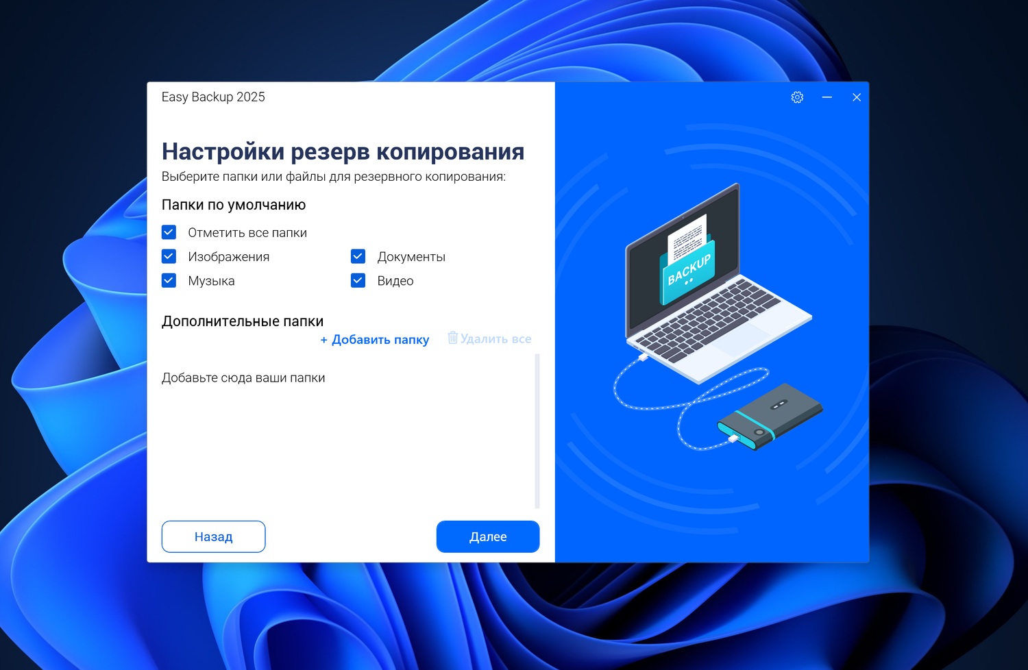 EasyBackup 2025 – это интуитивно понятная программа для резервного копирования данных, которая позволяет защитить важные файлы, фотографии, документы и коллекцию музыки всего в несколько кликов. Разработанная в Германии, она предлагает надёжное и быстрое копирование с возможностью автоматического выполнения резервных копий.