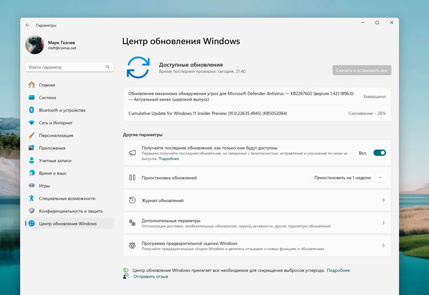 Участники программы, желающие первыми получить новые функции, могут включить переключатель «Получайте последние обновления, как только они будут доступны» в приложении «Параметры» > Центр обновления Windows», чтобы получать последние обновления по мере их доступности. Со временем функции будут распространяться на всех участников с включенным переключателем.
