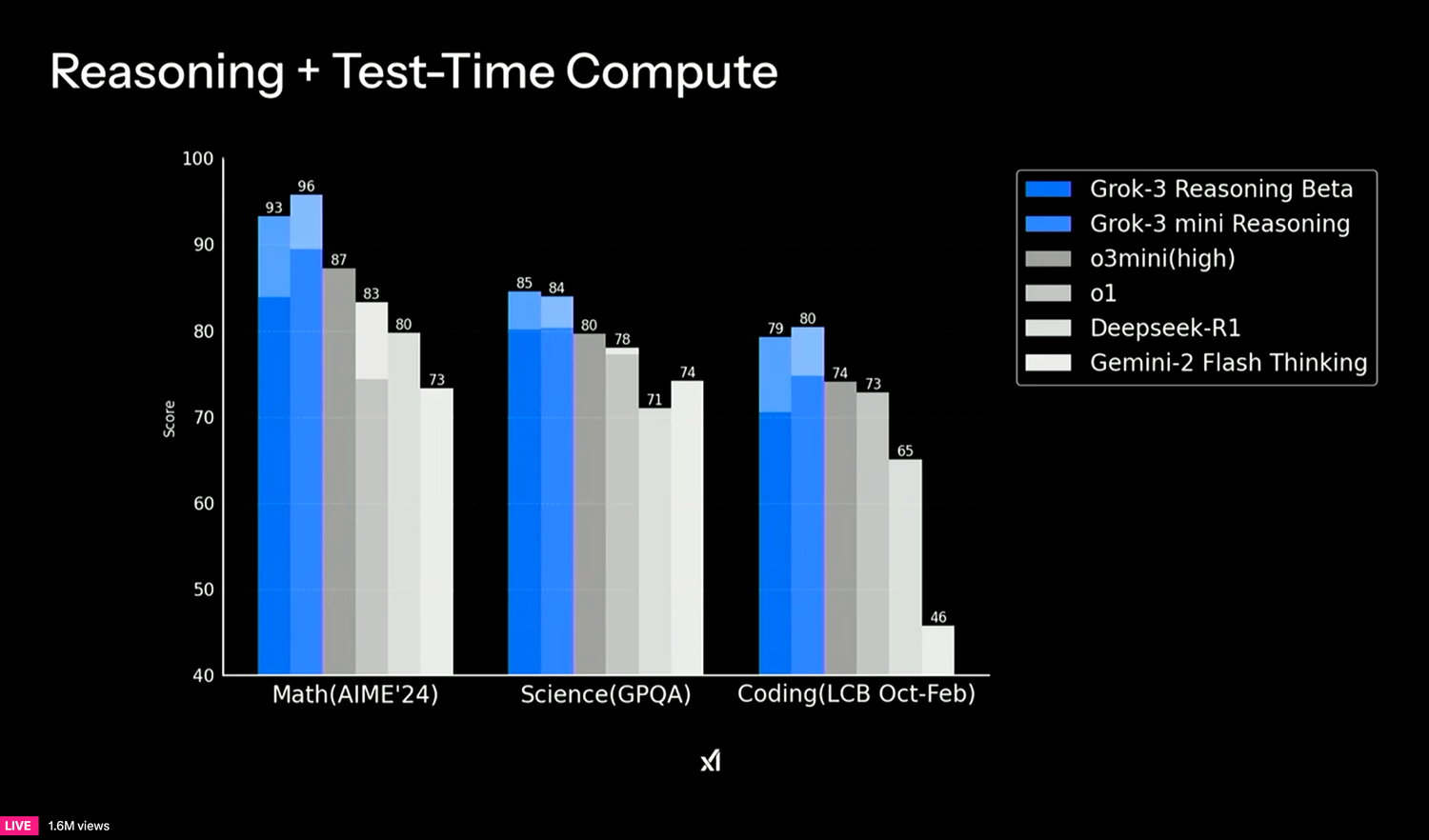 Все модели Grok 3 созданы для конкуренции с ведущими аналогами. Grok 3 соперничает с GPT-4o от OpenAI и Gemini от Google, а Grok 3 Reasoning — с o3-mini (high), o1 и DeepSeek-R1. Менее чем за 24 часа после выхода на рынок продукты xAI доминируют в бенчмарках и на рейтингах чат-ботов.