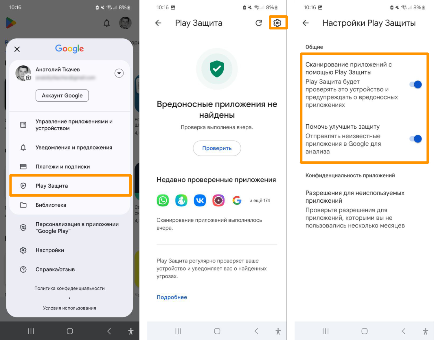 2. Перейдите в настройки Play Защиты