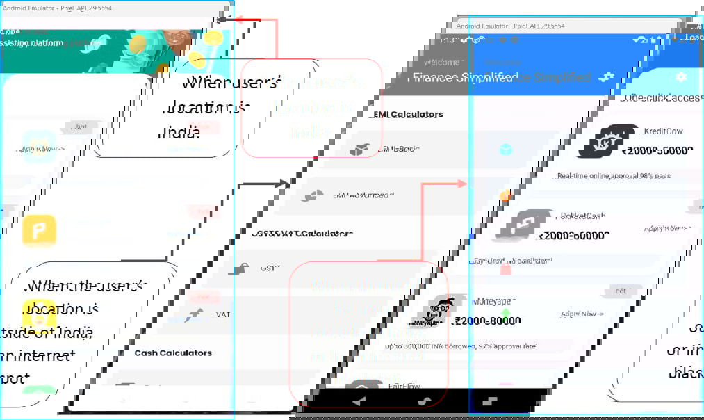 Похоже, что приложение Finance Simplified нацелено специально на индийских пользователей: оно демонстрирует и рекомендует кредитные приложения, загружая WebView, который отображает кредитный сервис с перенаправлением на внешний сайт, где загружается отдельный APK-файл.