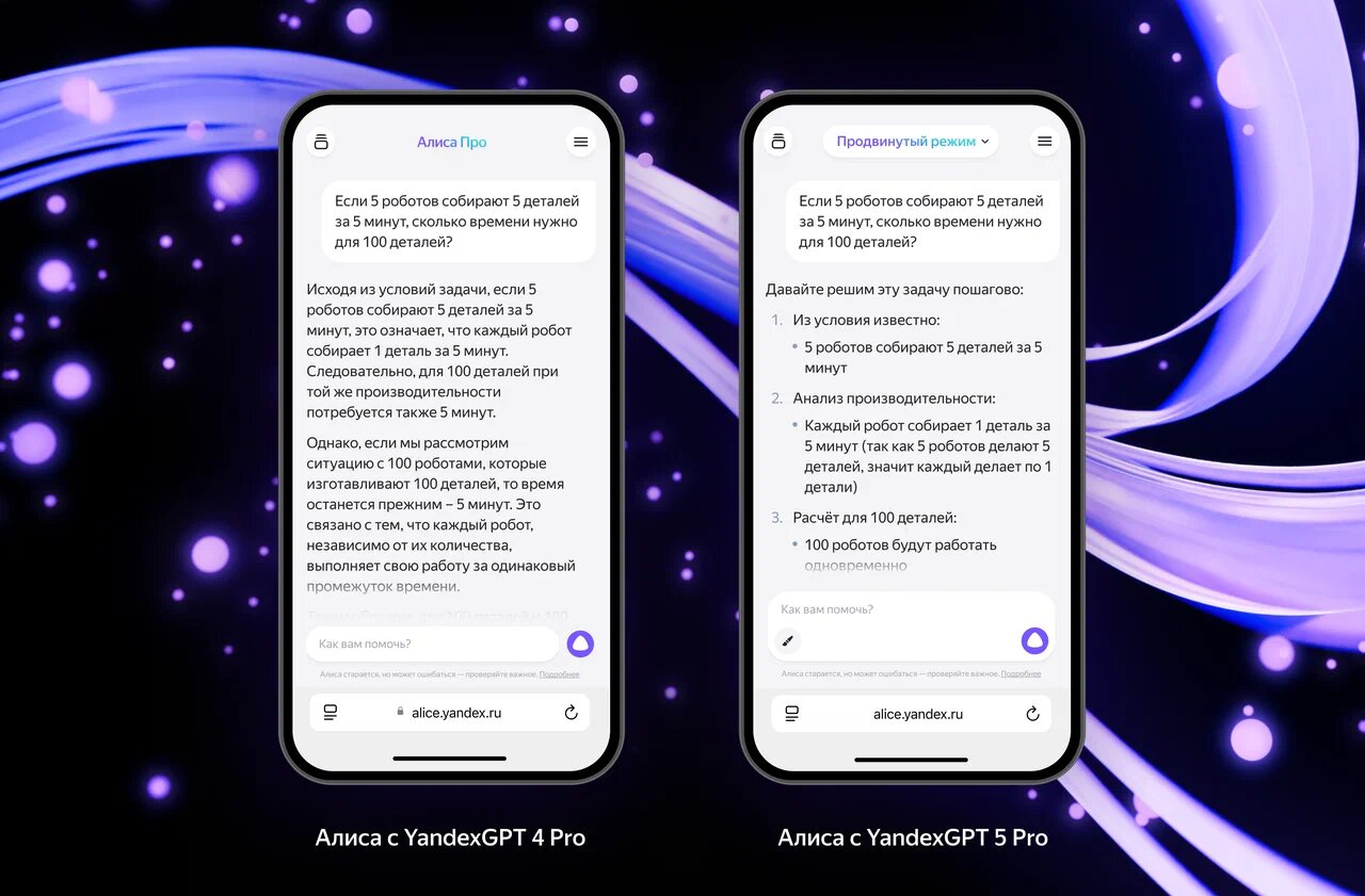 Компания Яндекс внедрила в чат с Алисой мощную языковую модель нового поколения — YandexGPT 5 Pro. Теперь пользователи могут решать широкий спектр задач — от личных и учебных до профессиональных. YandexGPT 5 Pro демонстрирует уровень, сопоставимый с ведущими мировыми аналогами, а в ряде случаев превосходит их по качеству ответов. Кроме того, саму модель можно протестировать в чате отдельно от функционала Алисы. Для бизнеса YandexGPT 5 Pro доступна через платформу Yandex Cloud.