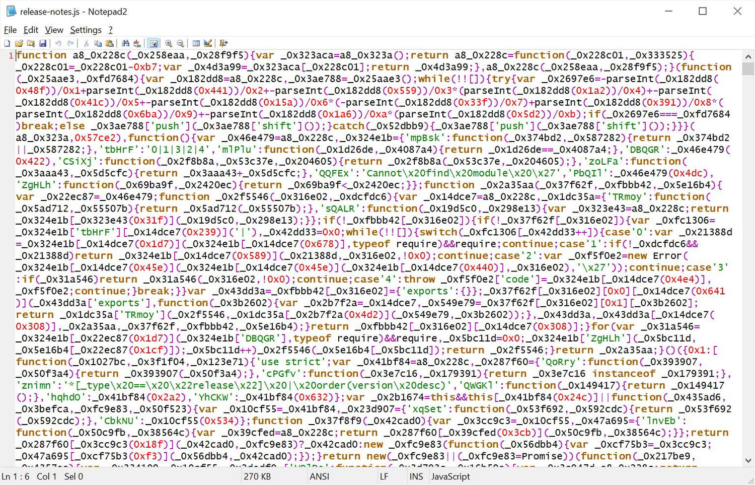 Файлы «release-notes.js» в теме содержат сильно обфусцированный JavaScript, что всегда является тревожным сигналом для ПО с открытым исходным кодом.