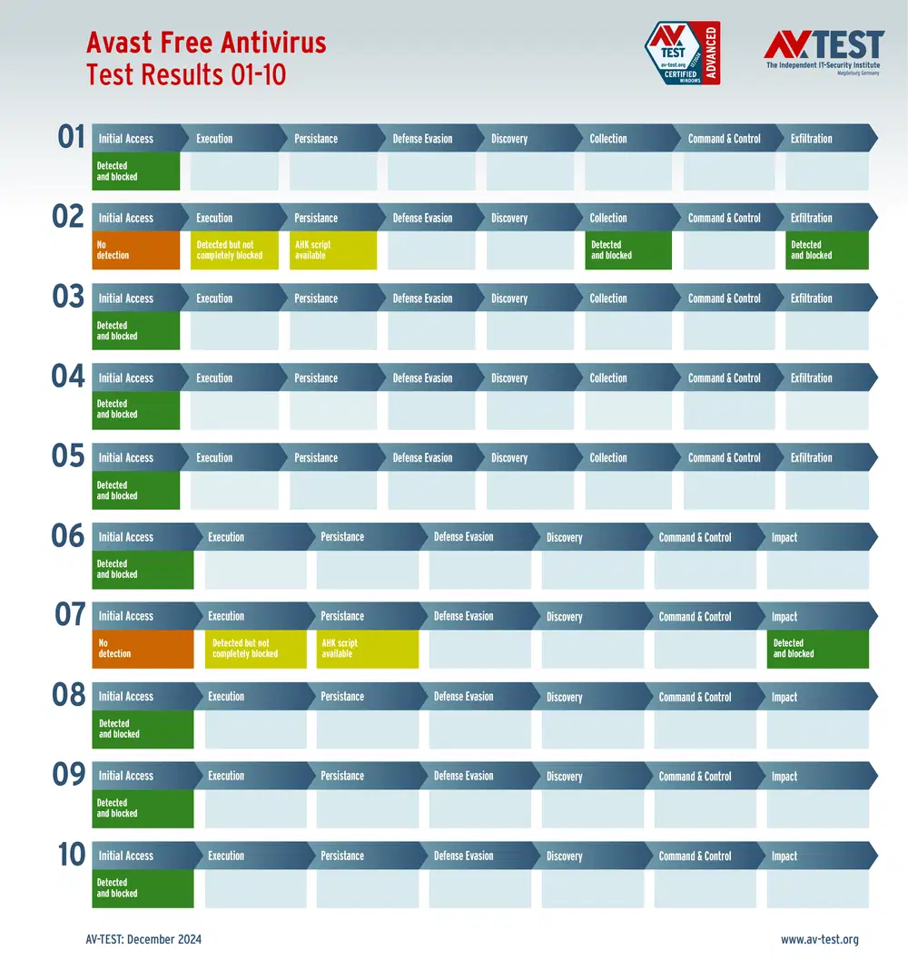 Решение Avast для конечных устройств также столкнулось с проблемами при атаке программ-вымогателей и инфостилеров. Угрозы были обнаружены, но изначально продолжали работу без помех, даже создав атакующие скрипты. Однако после их запуска Avast сумел полностью остановить атаку, что привело к итоговому счету в 33 балла.