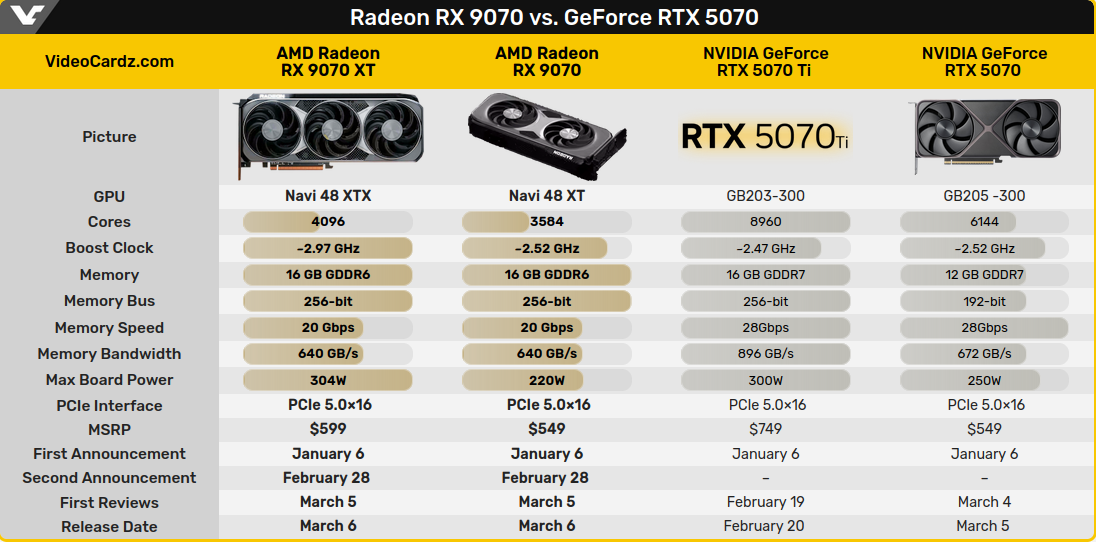 Характеристики RX 9070 XT и RX 9070