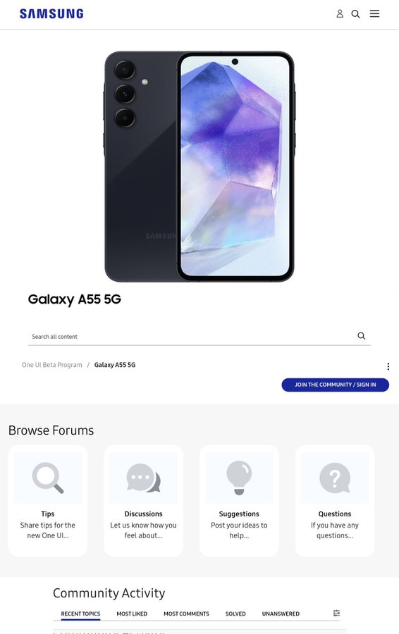 Еще одним косвенным доказательством стал новый раздел на форуме Samsung, посвященный бета-программе для Galaxy A55. Tarun Vats опубликовал снимок страницы, где, пусть и без прямого упоминания One UI 7.0, контекст очевиден. Учитывая, что смартфон вышел с One UI 6.1 на Android 14, следующее крупное обновление в рамках тестирования — это именно новая оболочка на базе Android 15.