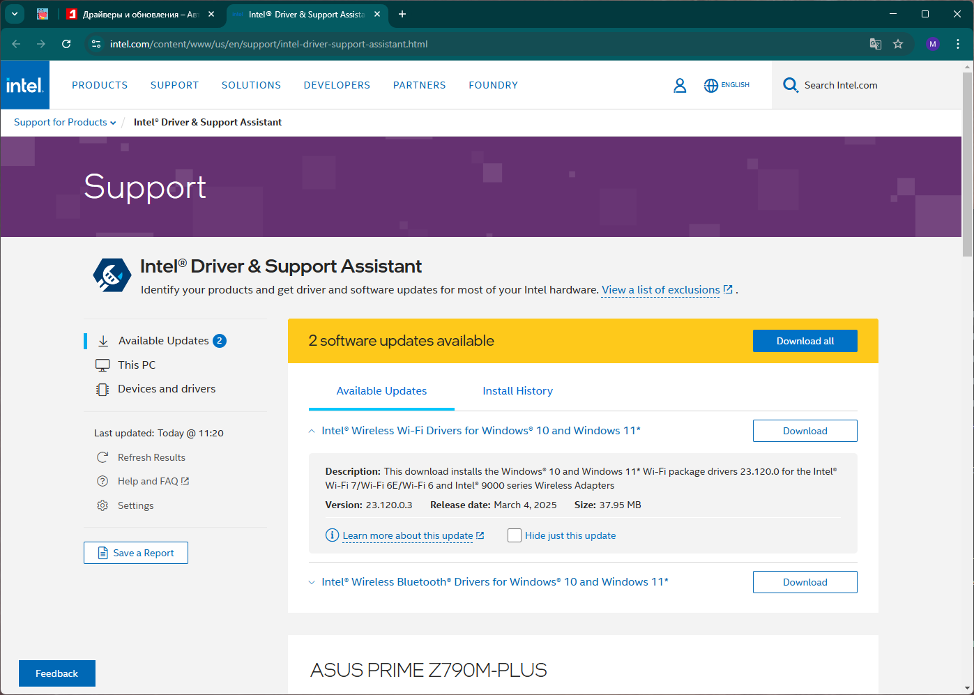 Вы также можете использовать утилиту Intel Driver and Support Assistant для автоматического обнаружения и установки драйверов.