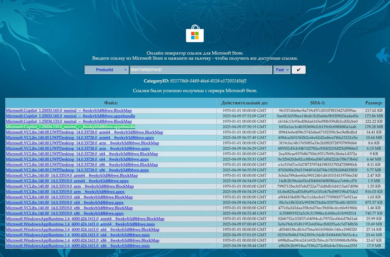 store.rg-adguard.netи выберите Product ID в первом раскрывающемся списке. - Вставьте 9NHT9RB2F4HD в строку поиска и выберите Fast во втором раскрывающемся списке.