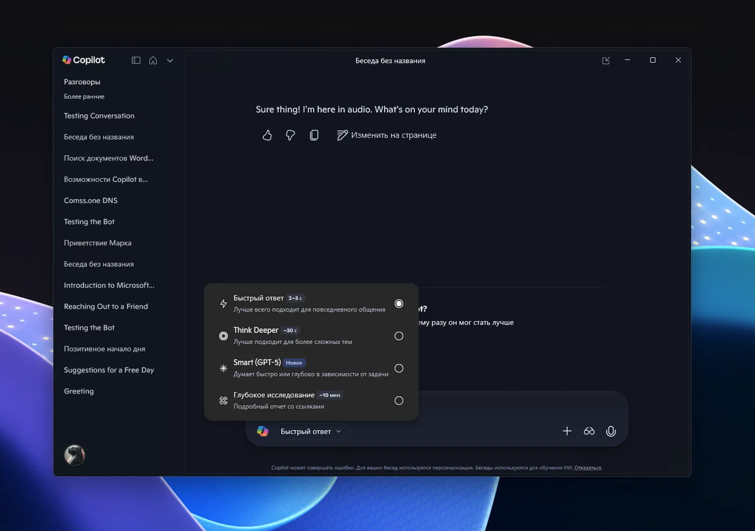Обновлено: 07.06.2025. Microsoft интегрировала GPT-5 в Copilot и AI-продукты. Добавлена новая версия приложения приложения Copilot для Windows (1.25073.145.0).
