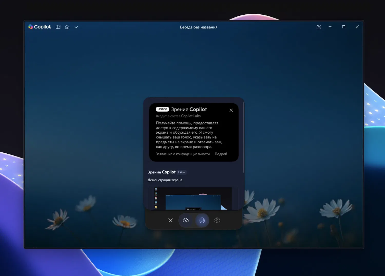 Обновлено: 23.10.2025. Microsoft добавила в Copilot для Windows возможность текстового общения с функцией Vision. Ранее Vision работала только через голос, теперь пользователи могут вводить вопросы и получать ответы прямо в чате. Функция доступна в обновлении Copilot версии 1.25103.107.0 и выше, распространяющемся через Microsoft Store среди участников программы Windows Insider.