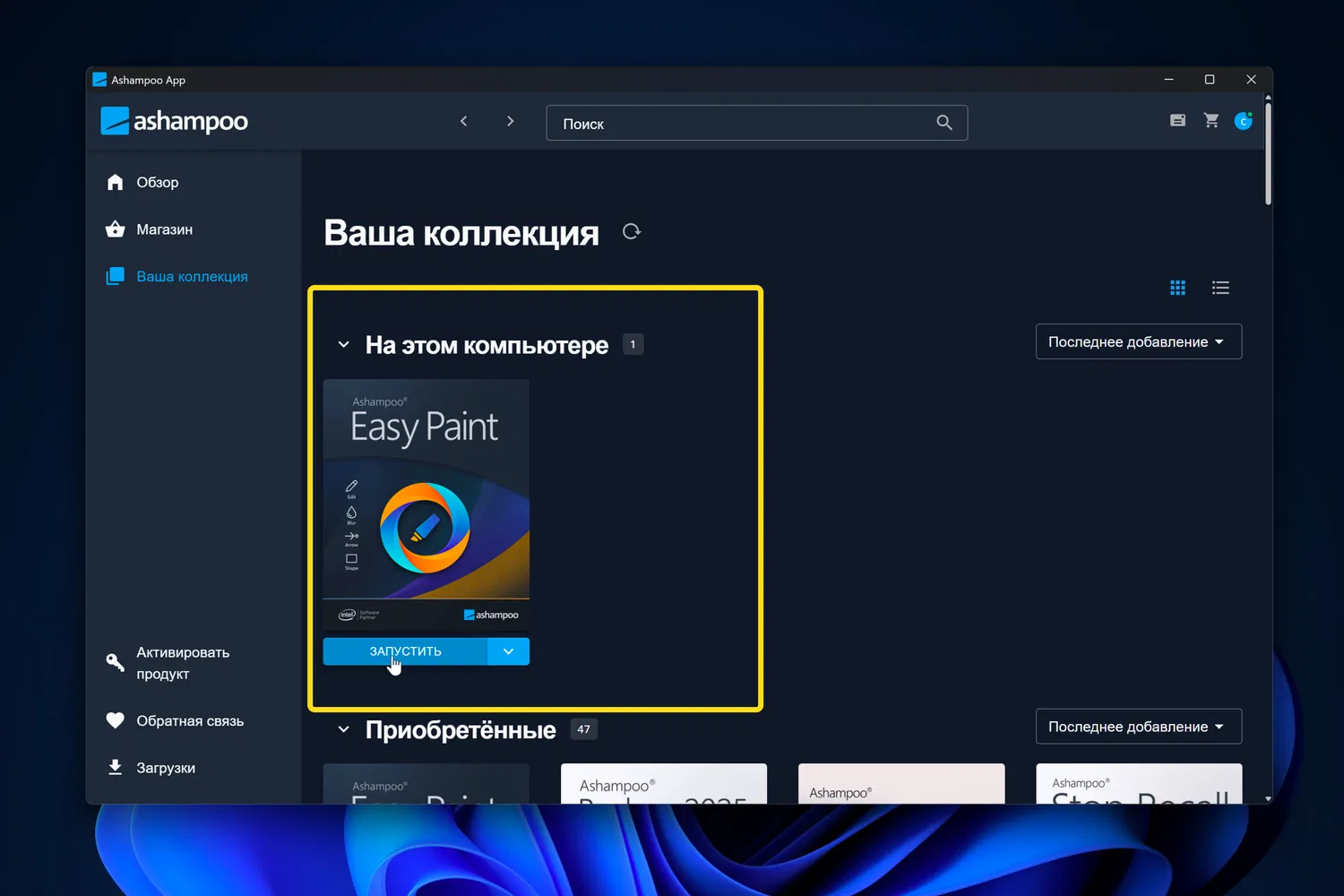 1. Скачайте программу и установите программу на ваш компьютер через цифровой центр Ashampoo App :