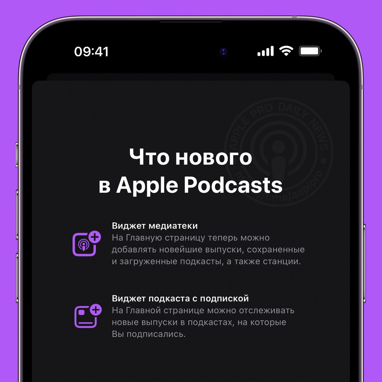 В приложении Подкасты появился обновленный приветственный экран, который знакомит пользователей с новыми виджетами.