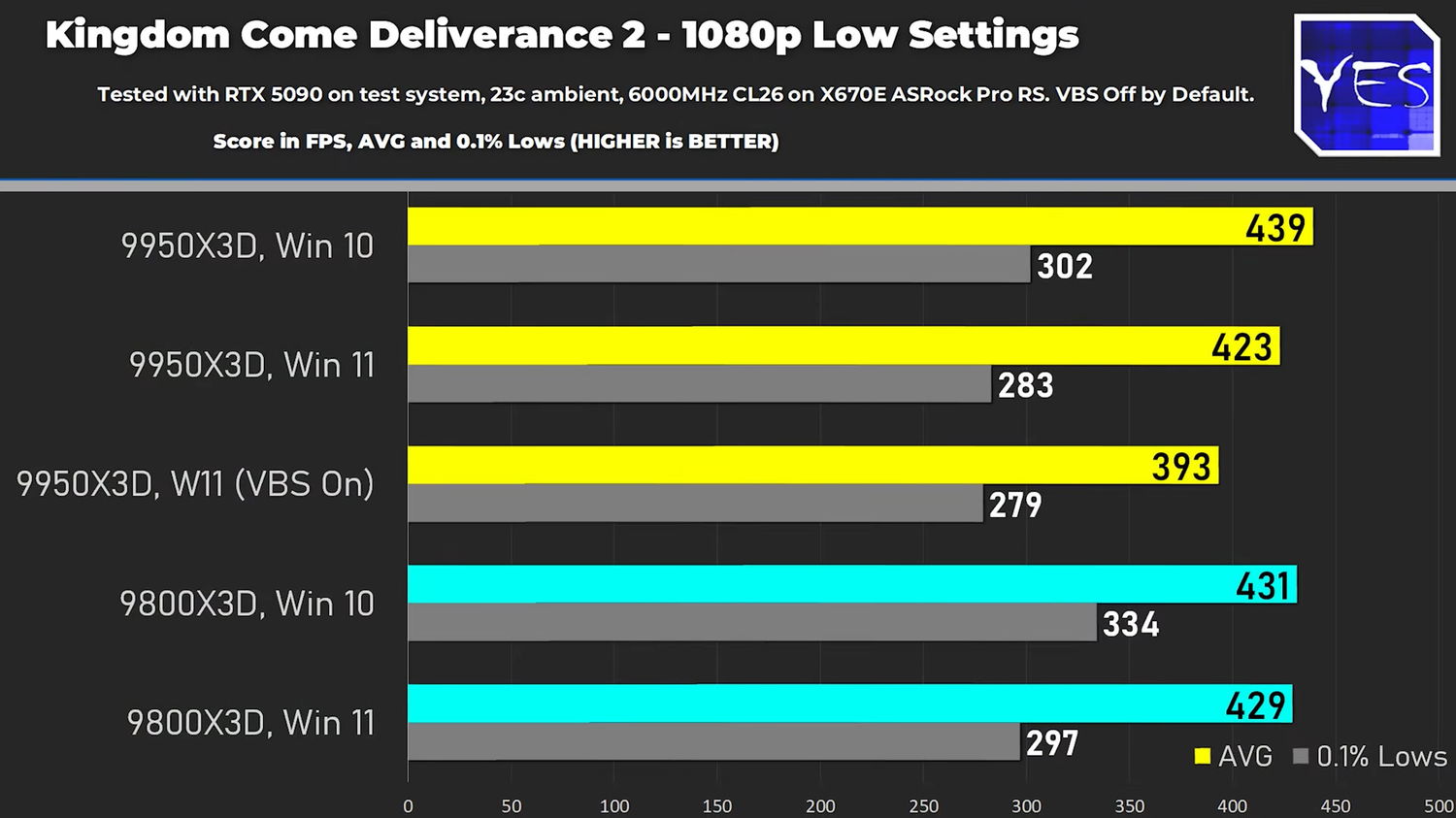В качестве тестовой ОС использовалась Windows 11 версии 23H2 и 24H2. VBS по умолчанию не активирован и не рекомендуется для использования на Windows 10. Однако данная функция известна своим негативным влиянием на производительность, что подтвердилось в новом тесте как для Ryzen 9 9950X3D, так и для ранее выпущенного Ryzen 7 9800X3D.