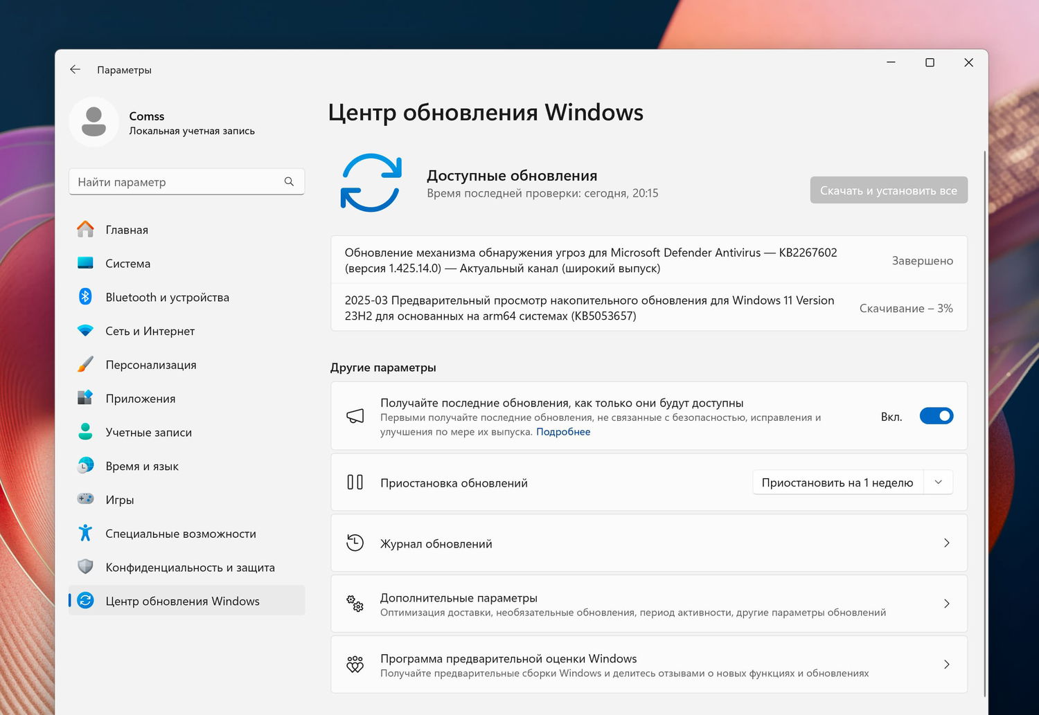 Примечание. Чтобы предварительные обновления устанавливались автоматически, включите опцию Получайте последние обновления, как только они будут доступны в меню Параметры > Центр обновления Windows.