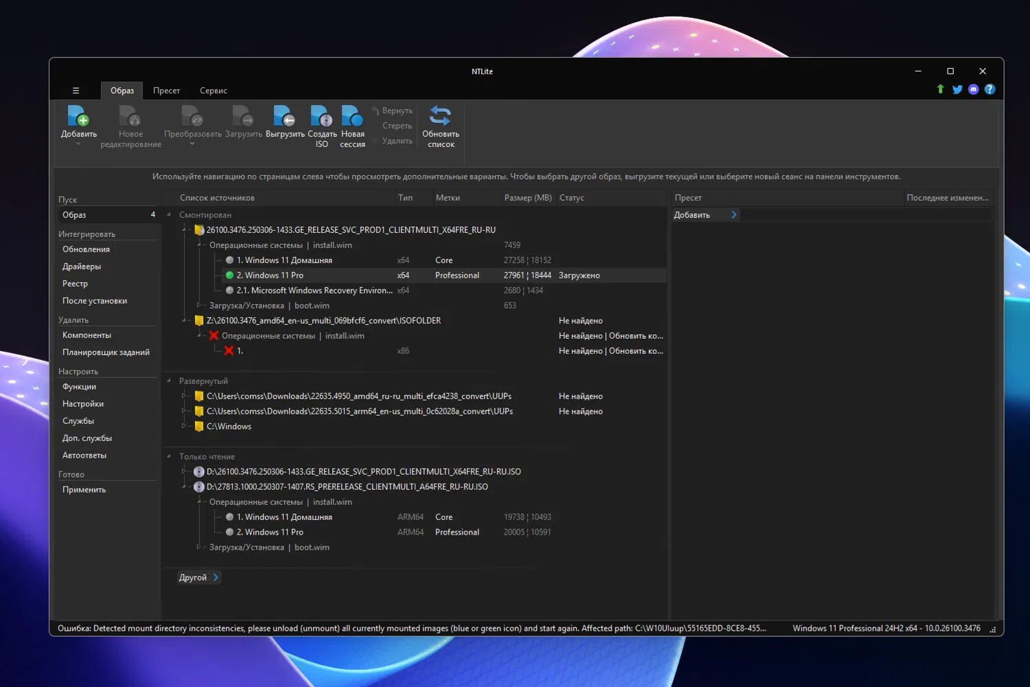 - Компоненты: компоненты «Windows Feature Experience Pack – LKG» объединены в один (можно добавить заново в пресет)