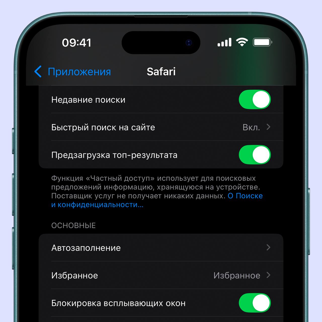 - В настройках браузера Safari появился новый переключатель, который позволяет скрывать историю недавних поисков.