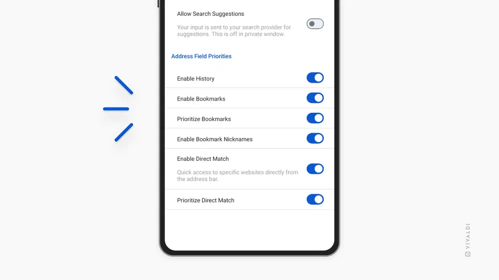 В Vivaldi 7.2 добавлены опции для включения или отключения предложений из закладок и истории, что делает мобильную версию более схожей с десктопной.