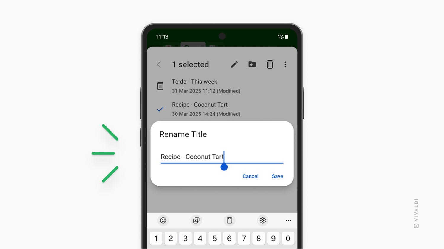 Заметки в Vivaldi — отличный способ сохранить идеи, фрагменты текста или напоминания. В версии 7.2 появилась возможность добавлять и редактировать заголовки заметок, что делает их организацию еще проще. Теперь не нужно пролистывать длинный список безымянных записей — просто назовите их и держите заметки в порядке.