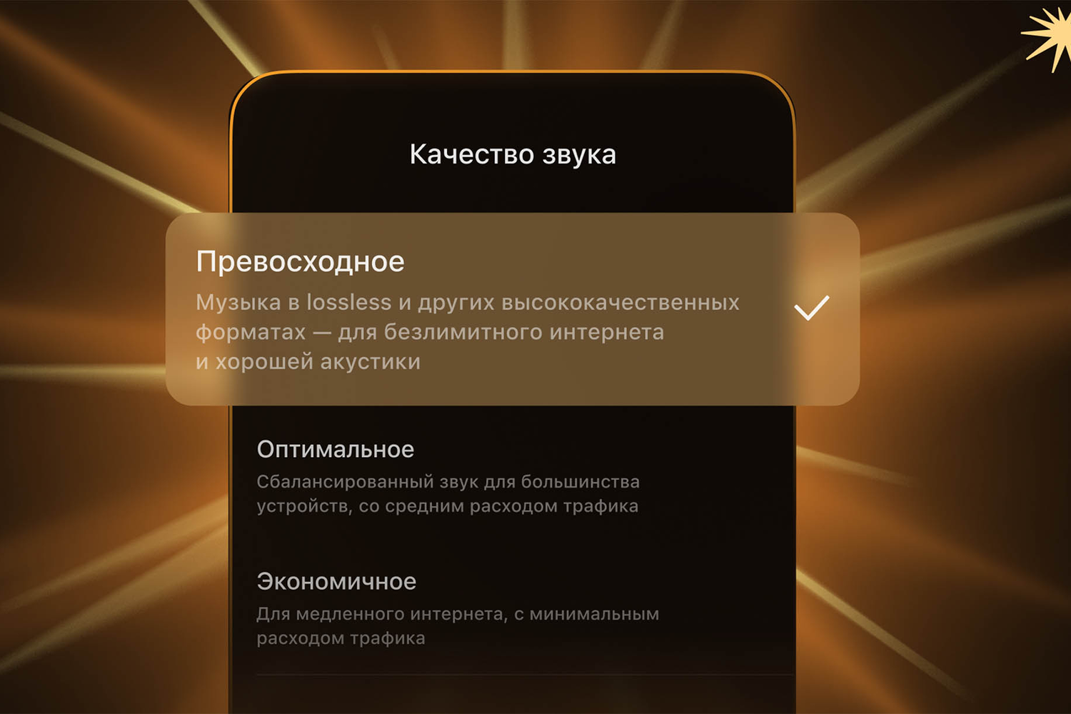 - Прослушивание музыки в lossless-формате для максимально качественного звучания без потери детализации.